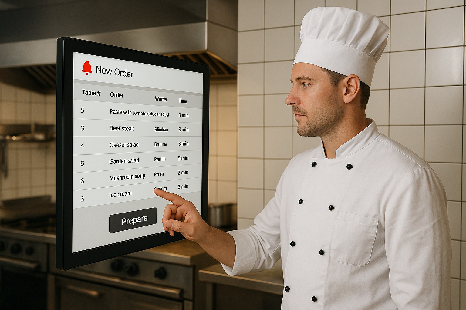 Hazırlanan lezzetli yiyecekleri mutfaktan gidip alma işlemi kalıyor bu şekilde aradaki sözlü iletişim de en aza iniyor insan hatası faktörü tamamen ortadan kalkıyor her adımda otomatik sistem çalışmaya başlıyor kargaşa ve yoğunluk azalıyor